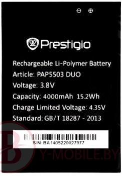 АКБ (Аккумуляторная батарея) для телефона Prestigio 4000mah. Совместимые устройства: Prestigio MultiPhone 5503 DUO, Prestigio MultiPhone 5517 DUO. Гарантия 6 месяцев. Платная доставка по городу. Возможна платная доставка по РБ. Возможен безналичный расчет.
